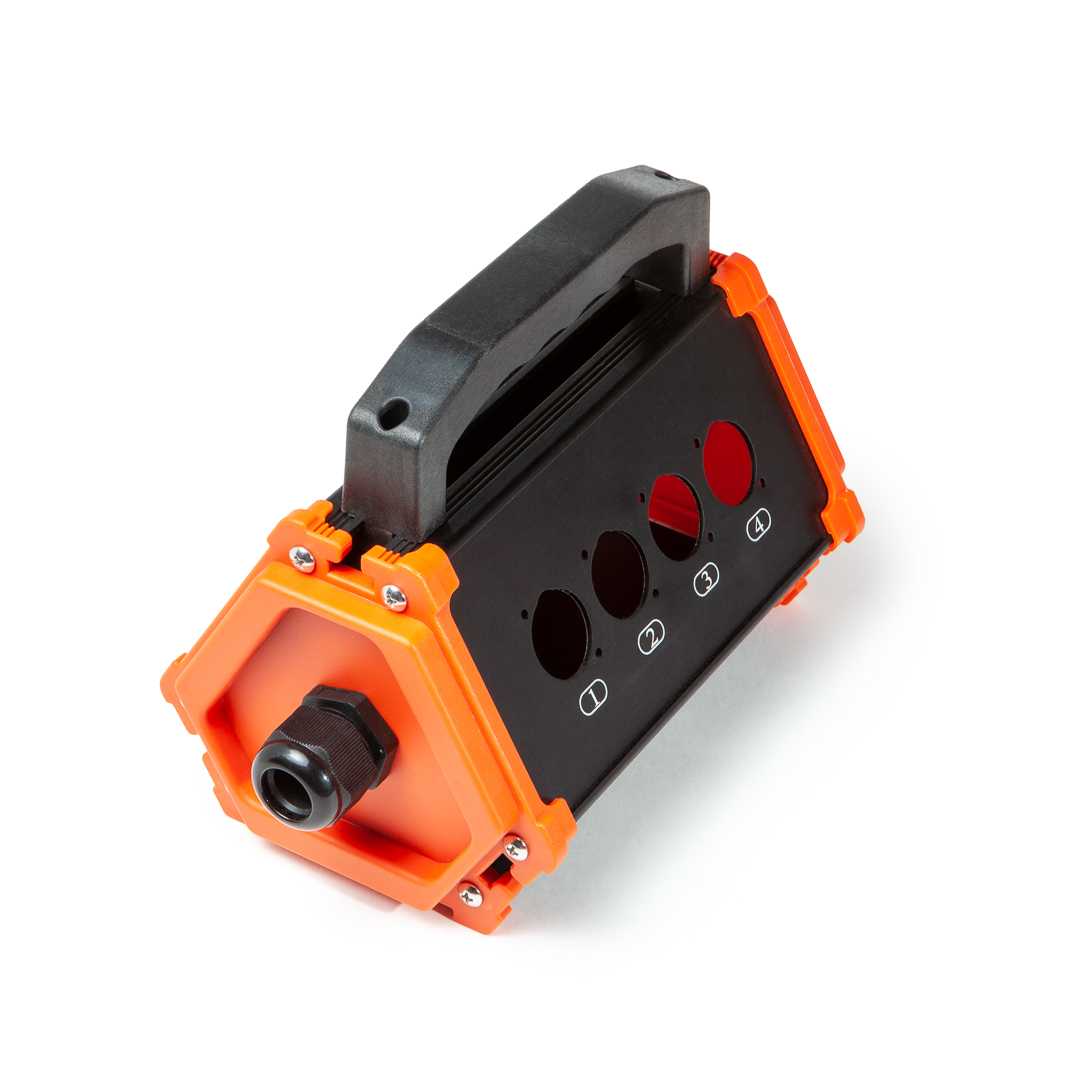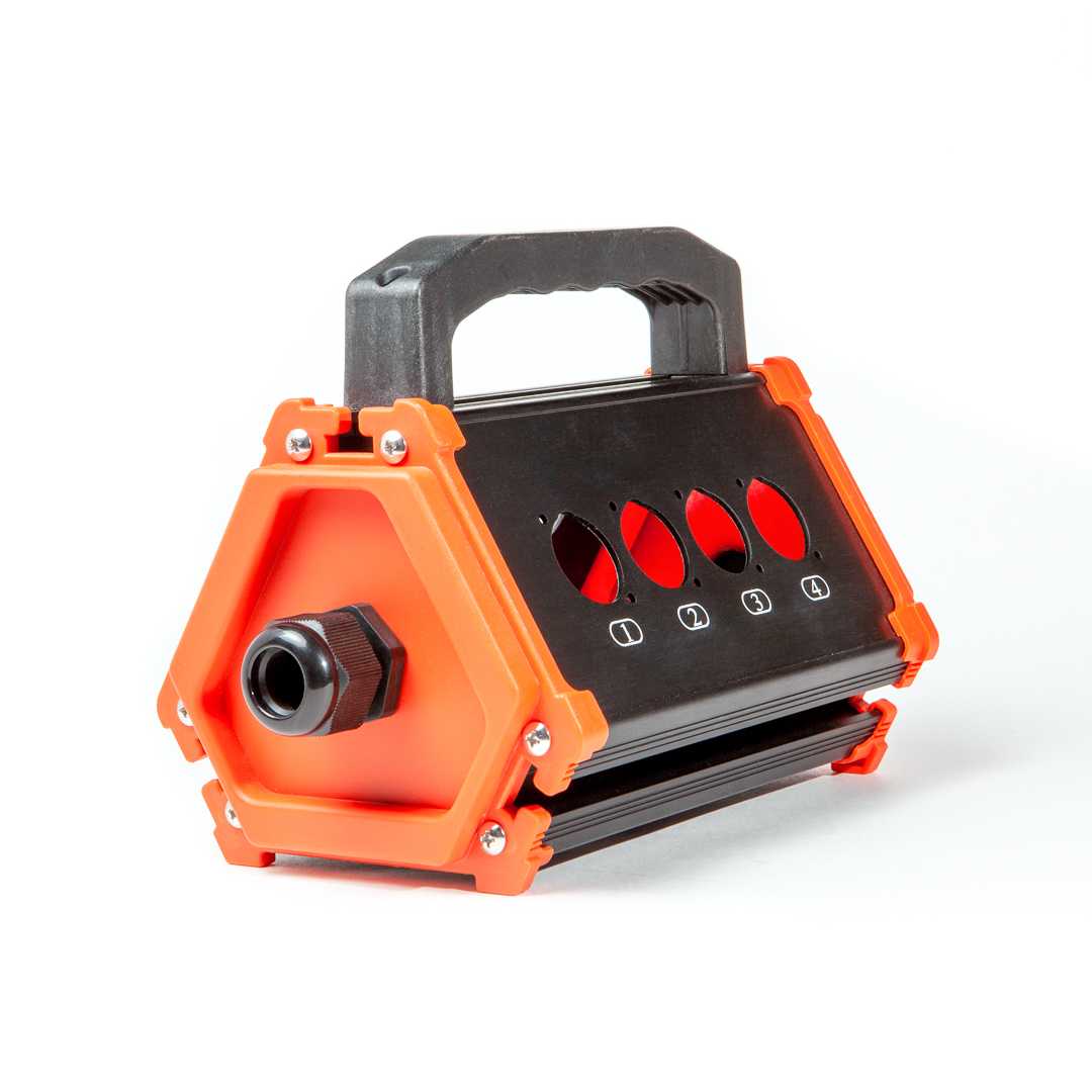 Короб сценический "треугольный", 8 пронумерованных отверстий под разъемы с фланцем "D" типа, рукоятка для переноски, материал - алюминий/пластик