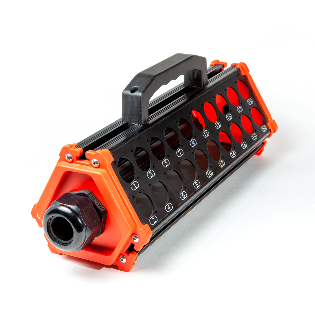 Короб сценический "треугольный", 40 пронумерованных отверстий под разъемы с фланцем "D" типа, рукоятка для переноски, материал - алюминий/пластик
