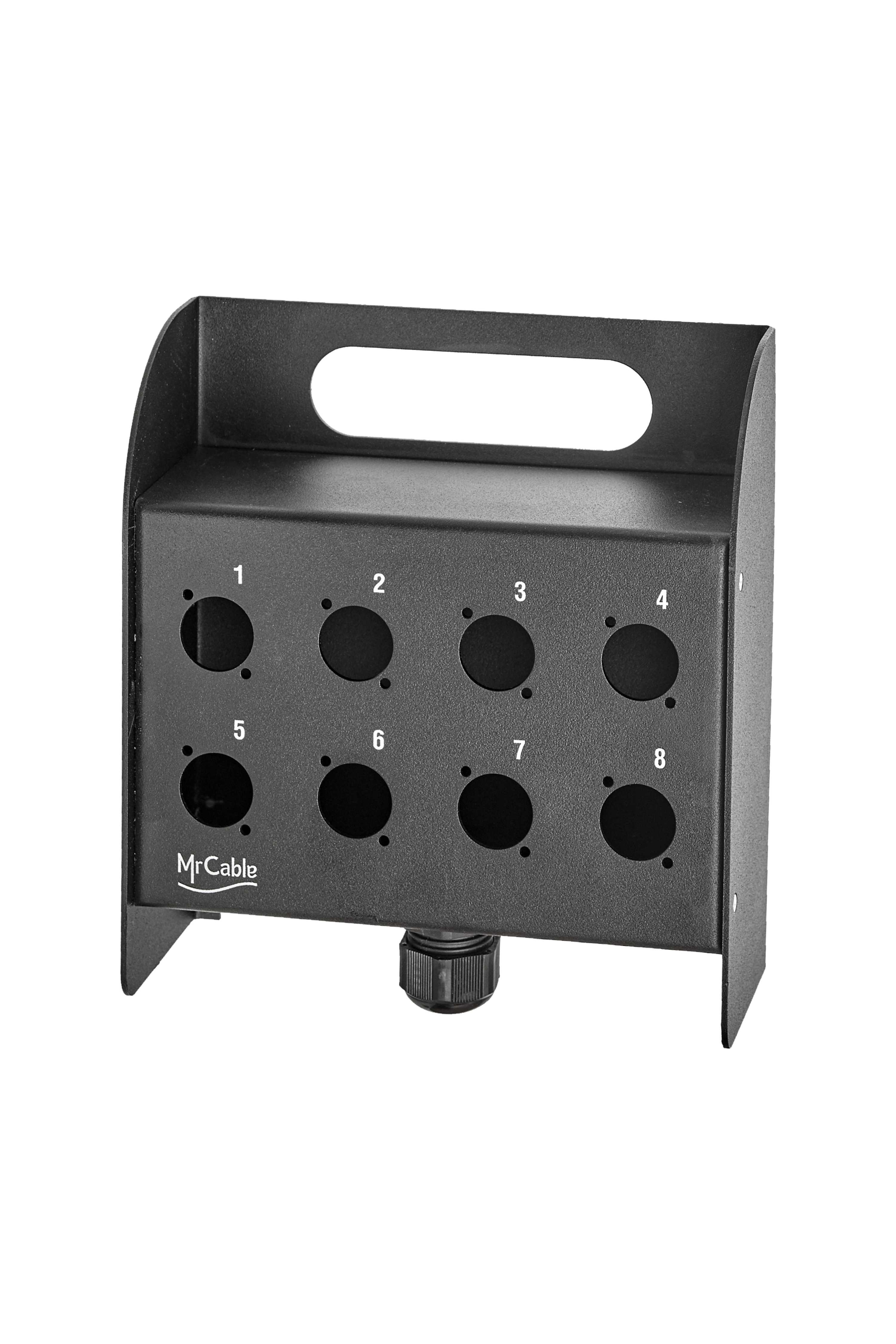 Короб сценический, 8 отверстий под разъемы с фланцем "D" типа, с возможностью крепления на стену, кабельный ввод 25/18, переходная пластина PG21, цвет: черный, матовый